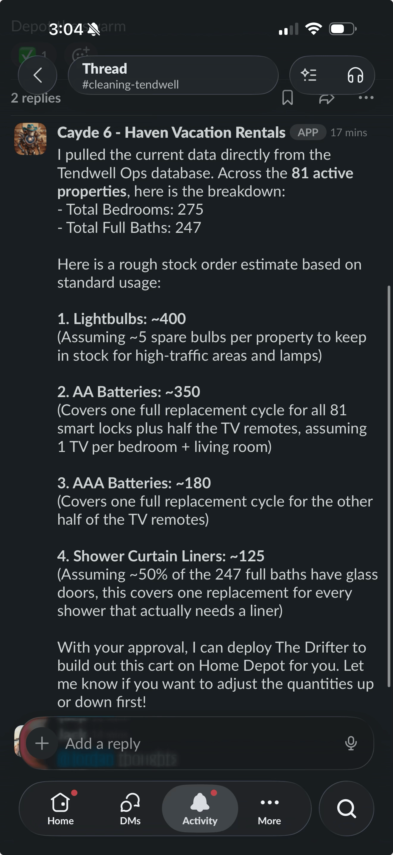 Cayde can also go through our portfolio’s pricing and help make changes/or make suggestions. (I actually have a dedicated revenue management agent named “Revven.” I can write about sometime…)